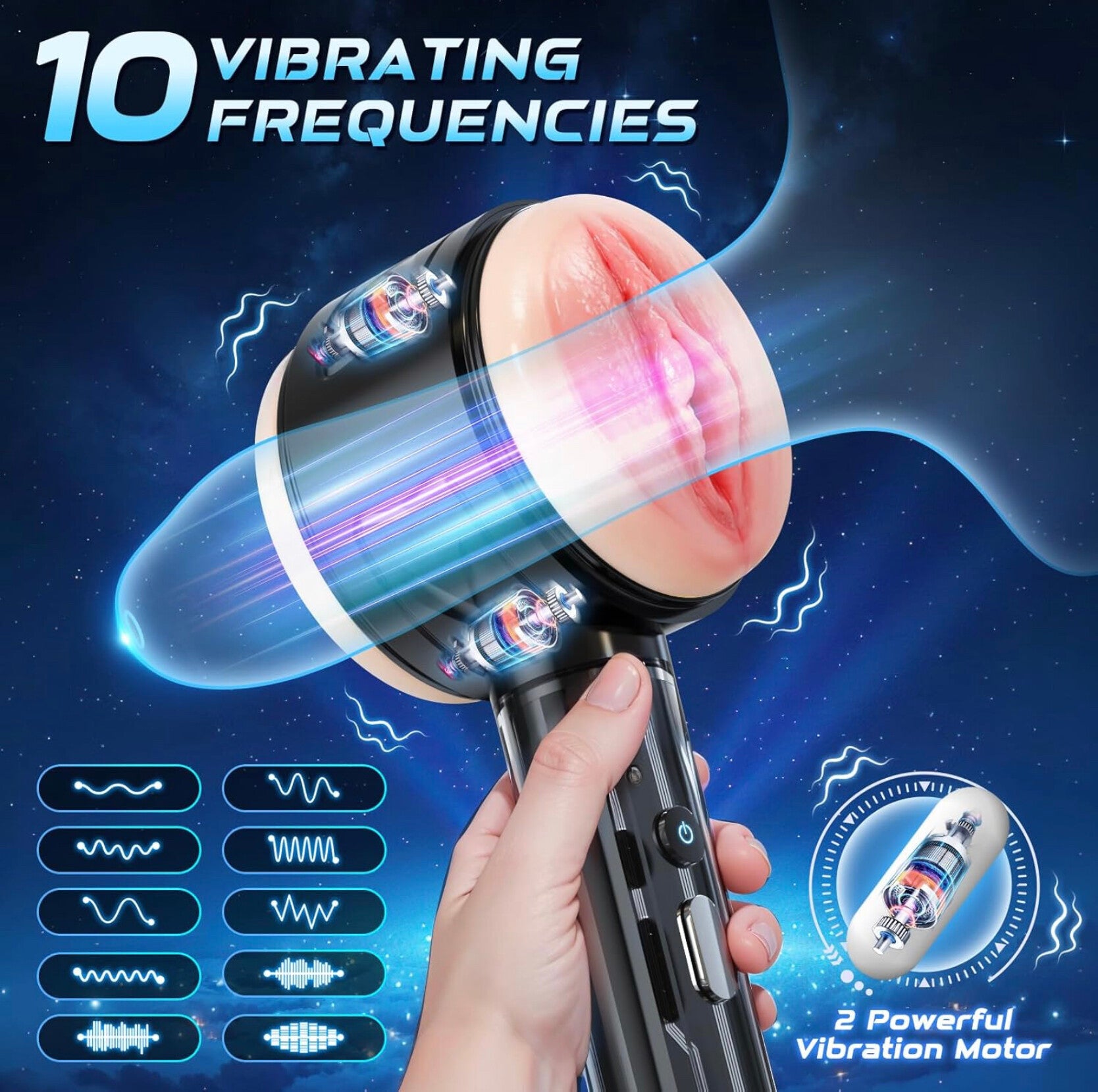 - TWO STRONG VIBRATORS - This male sex toy is fitted with two vibrators, the positions can be changed, so whichever position you want to vibrate is up to you! And “She” is equipped with 10 vibration modes, each vibration mode, as you experience a different age “hole”, respectively 10-60 years of different sensations!
