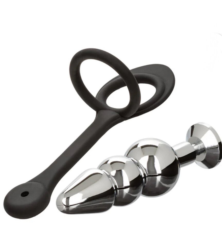 A totally unique and (of course) super sexy butt play meets cock - or strap-on - constriction piece from CalExotics' Star F**ker collection, the Erection Enhancer and Beaded Plug is a full-coverage and extra secure double enhancer ring with a deep-delving aluminum plug. It's the best of both worlds - or galaxies, even!