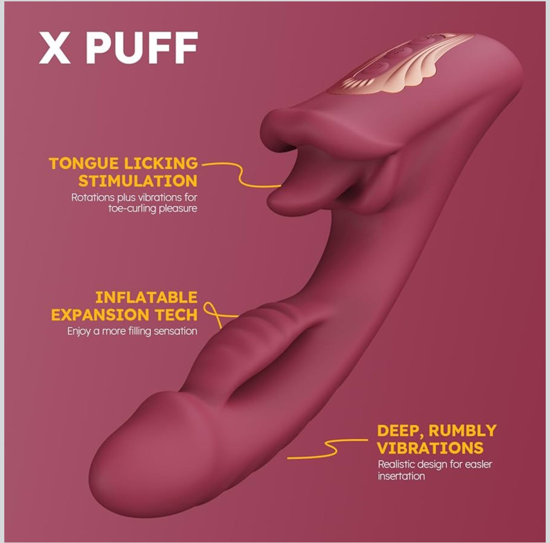 - FOR WOMEN, MEN & COUPLES PLAY: Whether you’re exploring solo, with a partner, or as part of a couples sex toys set, X PUFF 3 IN 1 vibrator sex toy adapts to your mood. Experience unparalleled pleasure by combining inflatable fullness with deep, rumbly vibrations, it’s perfect for those who crave deep sensations