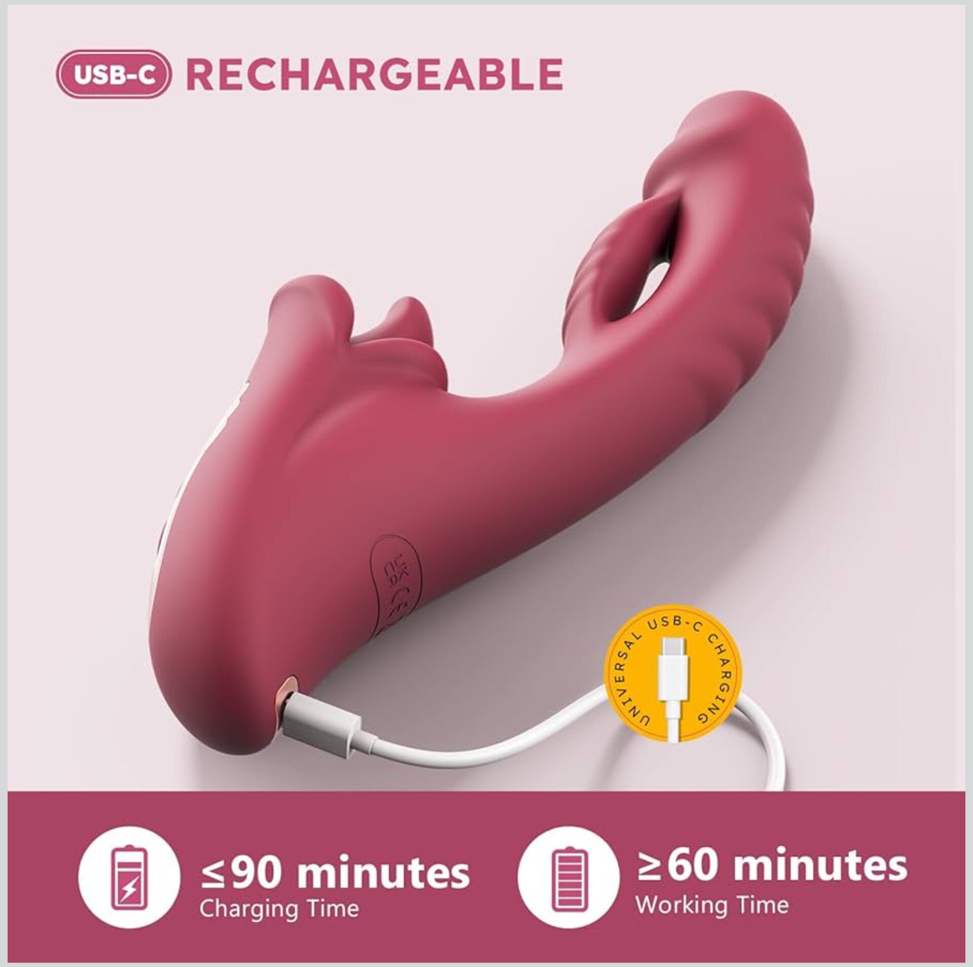 - USB-C CHARGING & IPX6 WATERPROOF: The universal USB-C charging system ensures long battery life—just 2 hours of charge provides up to 60-120 minutes of ecstasy. IPX6 waterproof design, perfect for play in the bath or shower. Features a bottom ventilation hole, do not submerge this vibrator in water